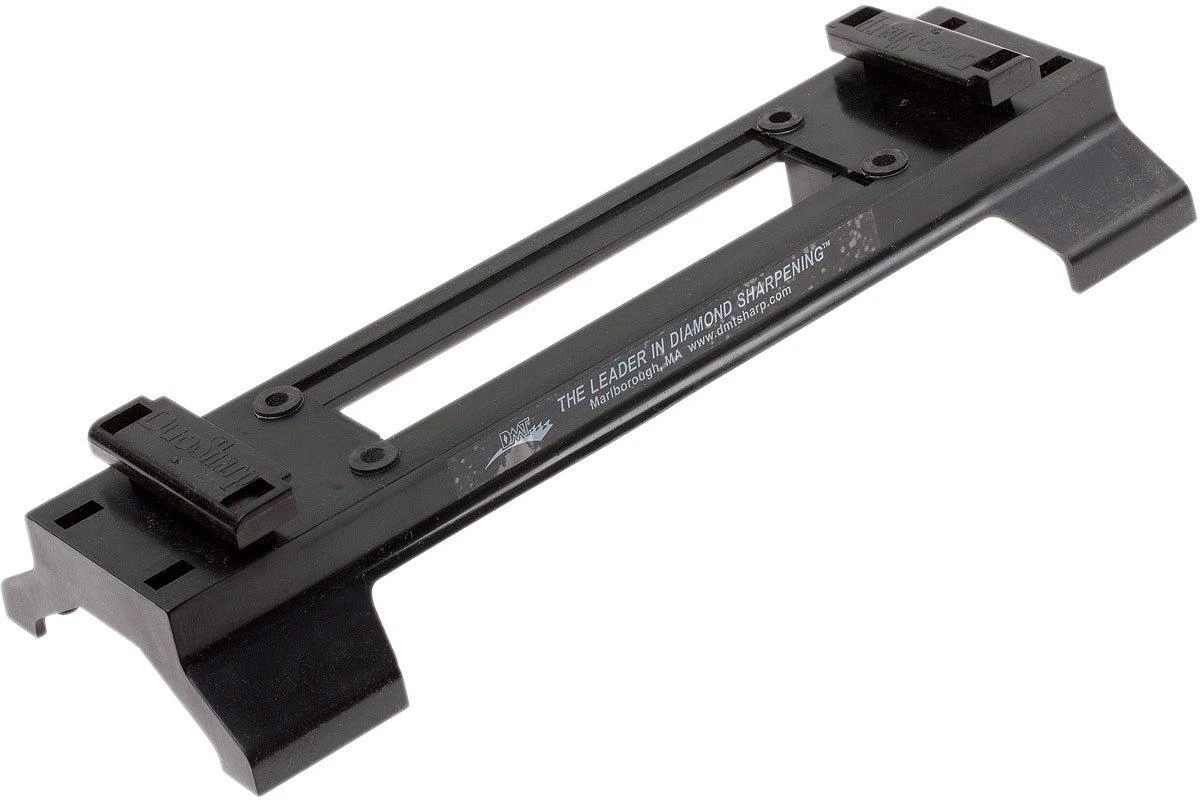 Der DMT Duosharp Schleifstein ist ein großer Diamantschleifstein, der sich ideal zum Schärfen von großen Messern eignet. Die Seiten des Schleifsteins haben jeweils ihre eigene Körnung. Dieser Schleifstein wird komplett mit einem Kunststofffuß geliefert, in den der Schleifstein eingespannt werden kann. Selbst eine einfache Plastikklammer wird so zu einem genialen Hilfsmittel. Dieser Halter kann nicht nur mit Schleifsteinen von 6, 8 und 10 Zoll verwendet werden – auch der Halter selbst kann auf zwei Arten verwendet werden. Üblich ist, dass der Fuß dafür sorgt, dass der Schleifstein beim Schleifen nicht abrutscht. Du kannst Dich also voll und ganz auf das Schleifen konzentrieren. An der Unterseite des Halters befindet sich ein Griff, den Du nutzen kannst, wenn Du Dich mit dem Stein auf das Schleifstück zubewegst. Dies ist so wie als wenn Du eine Axt in einen Schraubstock einspannst.