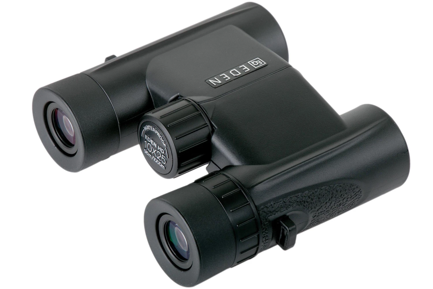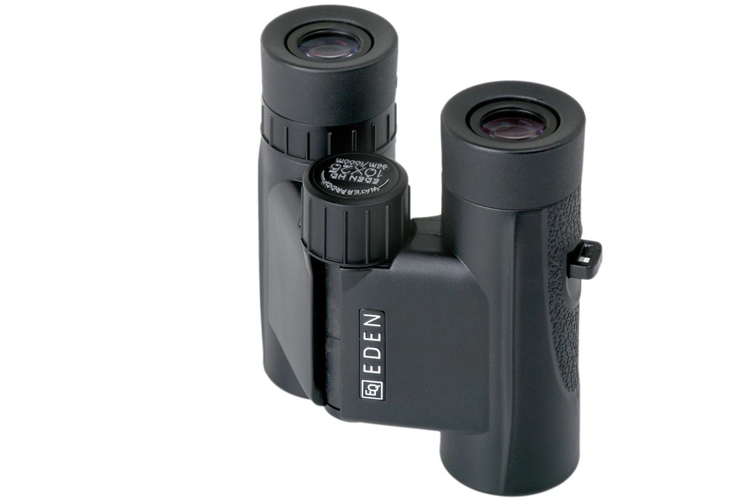 Eden 10×25 „Dachkant“ Fernglas mit einem sehr hellen und scharfen Bild bis in den Randbereich durch hochwertige Optik. 10-fache Vergrößerung, breites Sehfeld und schnelle Scharfeinstellung. Dieses moderne Fernglas ist mit einer Stickstoff-Füllung versehen.