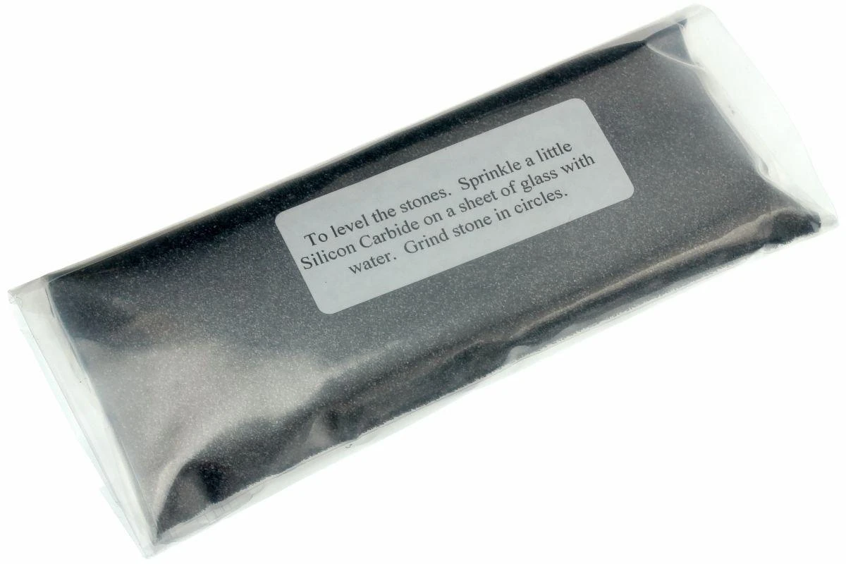 Verwenden Sie das Glättungstableau zusammen mit den Körnern aus sehr hartem Siliciumcarbid, wenn Sie Ihren Schleifstein glätten möchten. Man benötigt nur ein kleines bisschen Siliciumcarbid, um die Steine flach zu machen. Mit drehenden Bewegungen erreicht der Schleifstein wieder sehr schnell eine perfekte Fläche. Sie können das sehr leicht feststellen, indem Sie auf die Farbe des Steins schauen. Wenn der gesamte Stein eine einheitliche Farbe hat, dann ist der Stein in Ordnung. Wenn Sie einen anderen Stein mit der Seite dagegen halten, können Sie, wenn er gut ist, kein Licht mehr zwischen den Steinen durchscheinen sehen. Wenn Sie den Schleifstein glätten, verlängert dies die Lebensdauer.