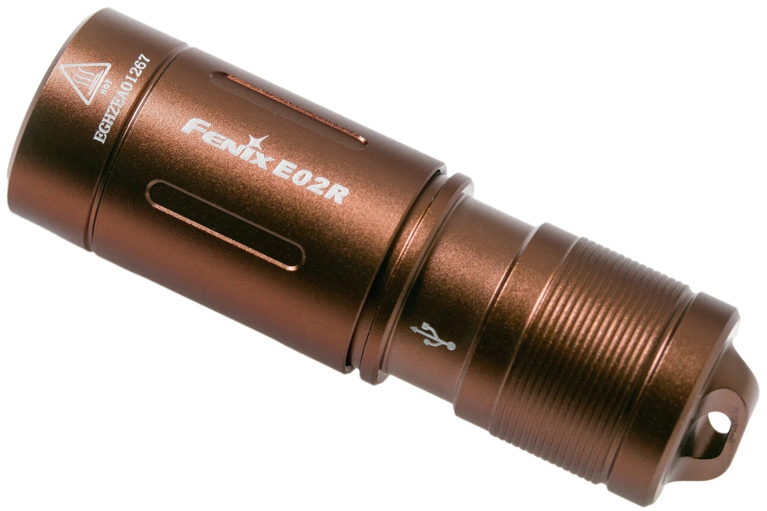Fenix E02R Aufladbare Schlüsselbundlampe, 200 Lumen, Braun