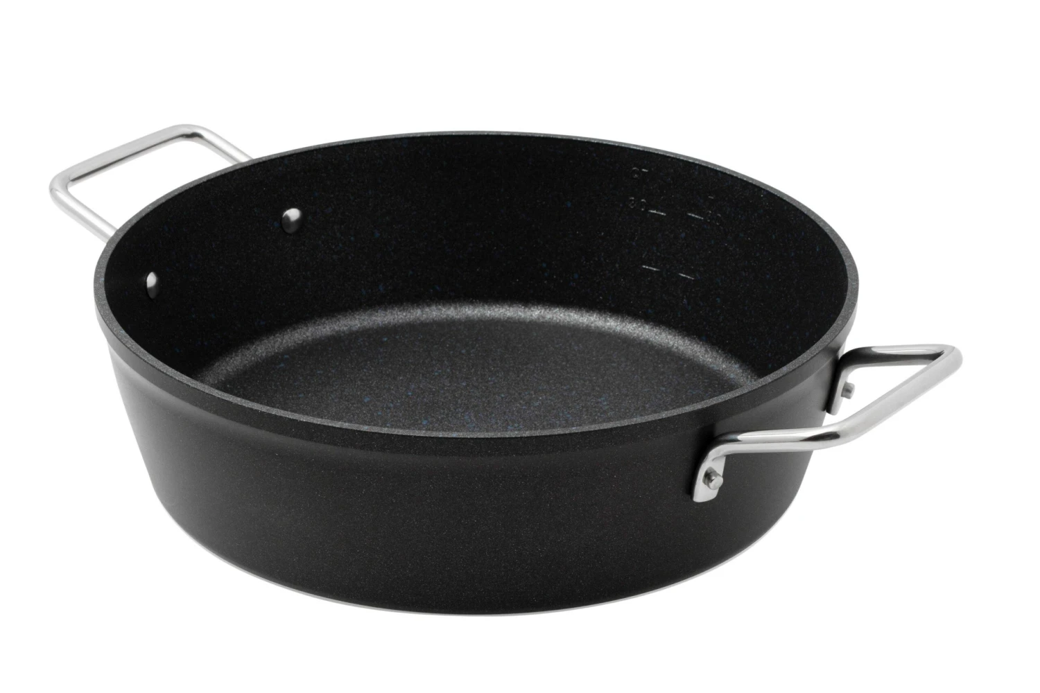 Die Fissler Adamant Bratpfanne hat einen Durchmesser von 28 cm und ist eine große, praktische Pfanne. Die Antihaftbeschichtung enthält Siliziumkarbid, was sie extrem robust und kratzfest macht. Sind Deine Pfannenwender aus Silikon gerade nicht zur Hand? Kein Problem, denn in den Fissler Adamant-Pfannen kannst Du auch Kochgeschirr aus Metall verwenden.