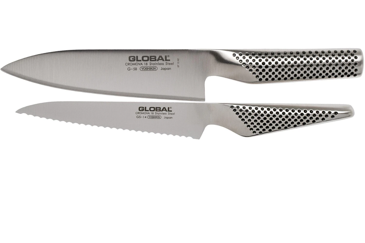 Global Messerset 2-teilig. Enthält die folgenden Modelle: G58 Kochmesser und GS14 Brotmesser