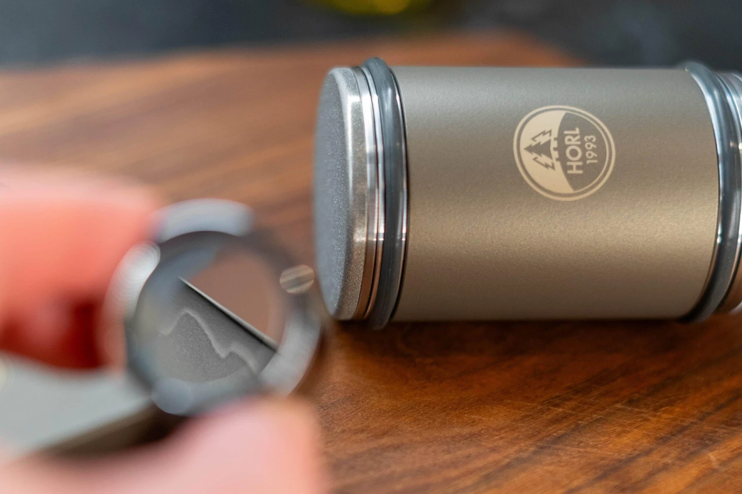 Die HORL Lupe Vergrößerungsglas wurde entwickelt, um Schärfe auch sichtbar zu bekommen. Die Lupe ist aus schrzem Holz gefertigt und bietet eine Vergrößerung von 3,5x und ist damit perfekt, um damit Dein Schleifmuster auf Deinem Messer zu untersuchen. Für alle, die gerne ganz genau hinschauen möchten. Mit dieser Lupe findest Du beispielsweise Graten, Dellen oder kleine Kratzer und alle anderen Unebenheiten, die Dein Messer stumpf machen. Untersuche Dein Schleifergebnis und hebe Deine Schleifkunst damit auf ein höheres Niveau.