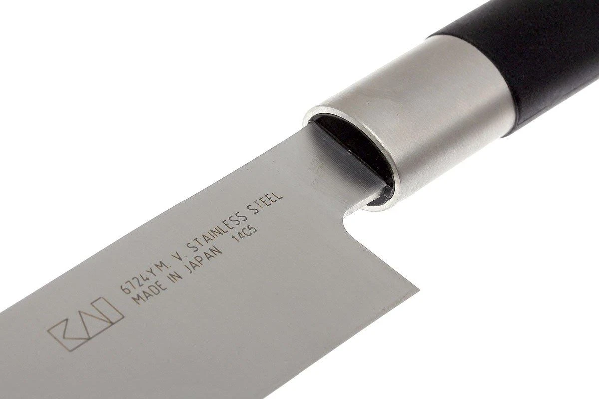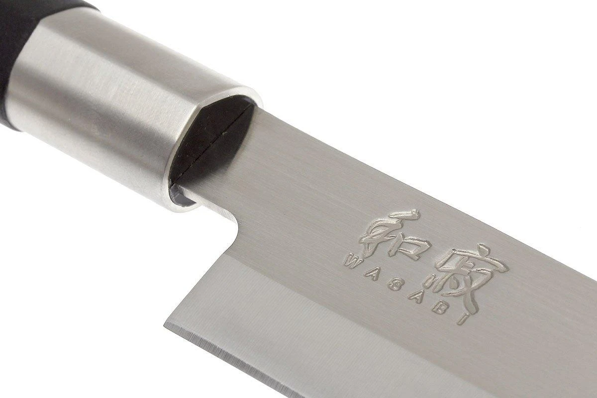 Kai ist bekannt für seine hochwertigen Kai Shun Küchenmesser. Mit der Kai Wasabi-Serie ist diese hohe Qualität nun auch zu einem erschwinglichen Preis erhältlich. Die rostfreie Klinge aus Daido 1K6-Stahl ist sehr dünn geschliffen und auf 58 HRC gehärtet. Da es keinen Kropf gibt, kannst Du die komplette Schneide benutzen. Außerdem lässt sich die Klinge so leichter schleifen. Der Griff besteht aus einer Kombination von Bambuspulver und Polypropylen. Das macht den Griff strapazierfähig und wasserfest.