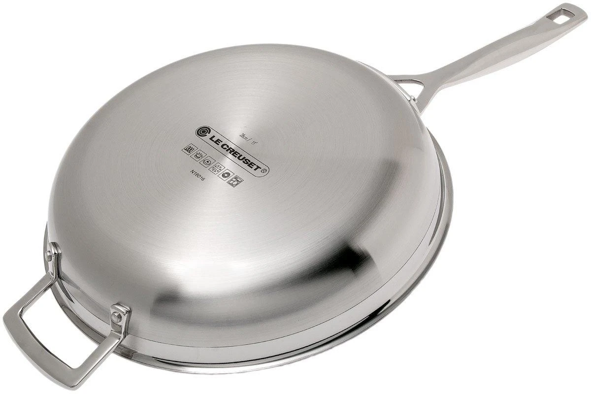 Die Le Creuset 3-Ply Pfanne bietet ultimativen Gebrauchskomfort und die berühmte Le Creuset-Qualität. Die Pfanne hat einen Durchmesser von 28 cm, eine sehr starke Antihaftbeschichtung und ist aus geschmiedetem Aluminium gefertigt. Dies sorgt für eine optimale Wärmeverteilung. Außerdem ist die Pfanne so leichter, als wenn sie z.B. aus Gusseisen gefertigt wäre. Dies erhöht den Benutzerkomfort. Die Griffe sind aus gegossenem Stahl und mit Edelstahlstiften befestigt. Dank dieser Griffe ist die Pfanne sehr leicht zu handhaben. Eine perfekte Pfanne zum Braten, Rösten und zur Zubereitung köstlicher Gerichte!