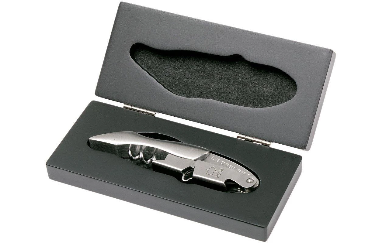 Das Le Creuset WT-110 ist ein schönes und vollständiges Kellnermesser. Das Kellnermesser besitzt einen praktischen Doppelhebel mit dem der Korken in zwei Schritten herausgezogen werden kann. Abgebrochene Korken gehören der Vergangenheit an! Der integrierte Kronkorkenöffner und Kapselschneider machen dieses Kellnermesser zu einem perfekten Begleiter für unterwegs. Die edlen Griffschalen aus Holz verleihen dem Kellnermesser zusätzlich einen edlen Look.