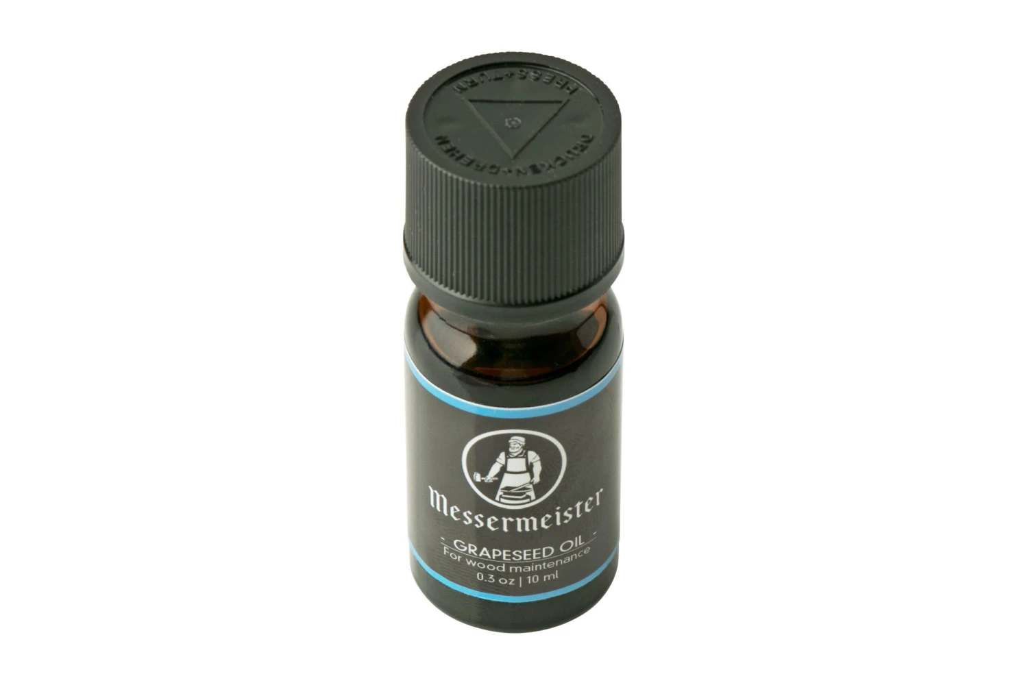 Das Messermeister Oliva Pflegeset ist alles, was Du zur Pflege der Holzgriffe Deiner Messer benötigst. Mit der Zeit wird das Holz eines Messers stumpf und verliert seine schöne tiefe Farbe. Mit diesem Pflegeset, bestehend aus einer Flasche mit 10 ml Traubenkernöl und einem Baumwolltuch, bringst Du den Griff wieder in einen neuwertigen Zustand.