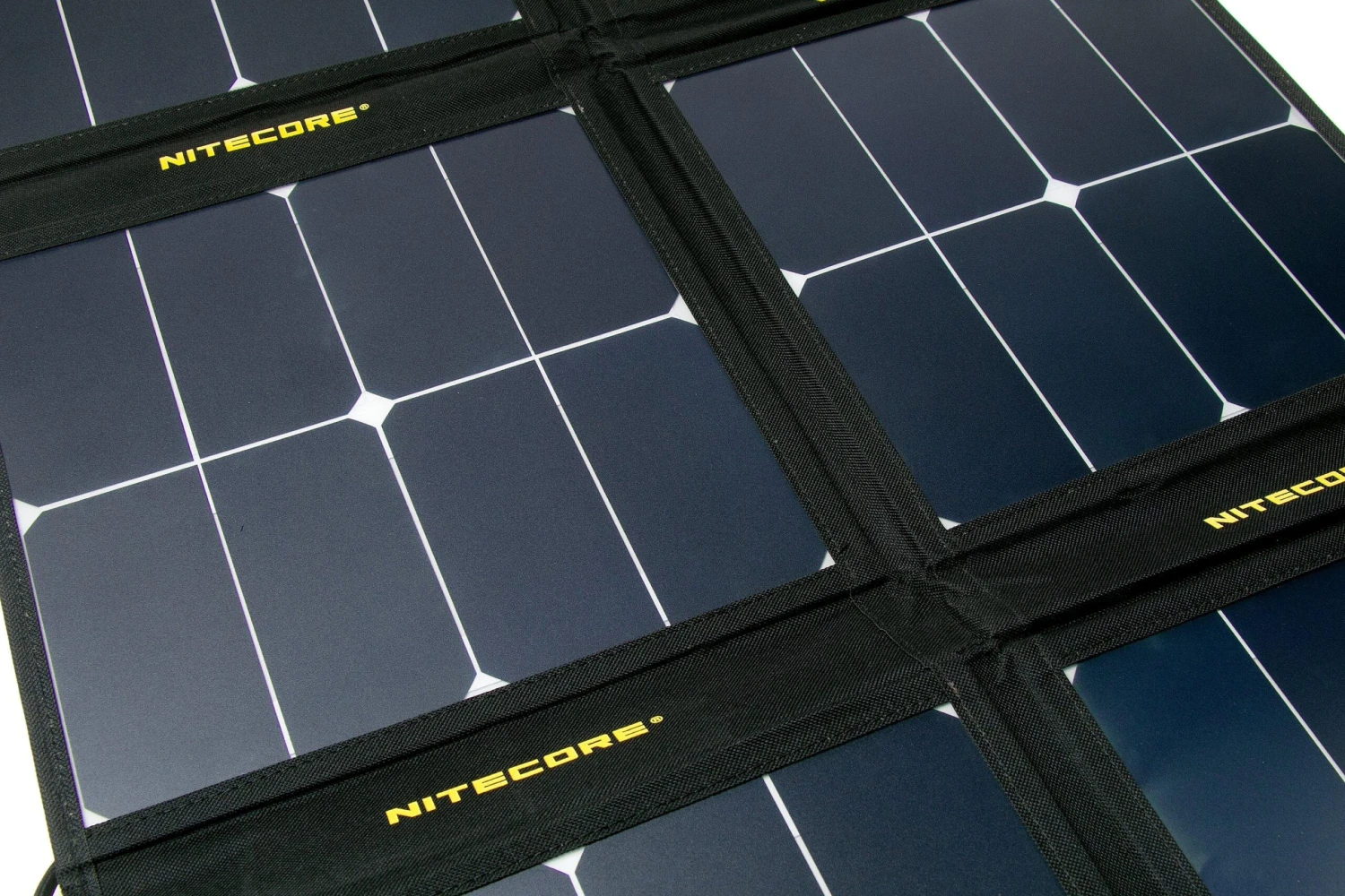 Nitecore FSP100 ist ein faltbares Solarpanel für Autoreisen oder als Notstromversorgung. Es besteht aus 8 Solarpanelen mit einem Zellwirkungsgrad von 24%, was sehr hoch für diese Art von mobilen Solarmodulen ist. Das FSP100 hat einen maximalen Output von 100W. Natürlich hängt die Leistung von vielen Faktoren wie Sonnenlicht und Temperatur ab. Mit dem FSP100 kannst Du Deine Geräte über einen DC-Anschluss, einen USB-C-Anschluss oder zwei USB-A-Anschlüsse laden.