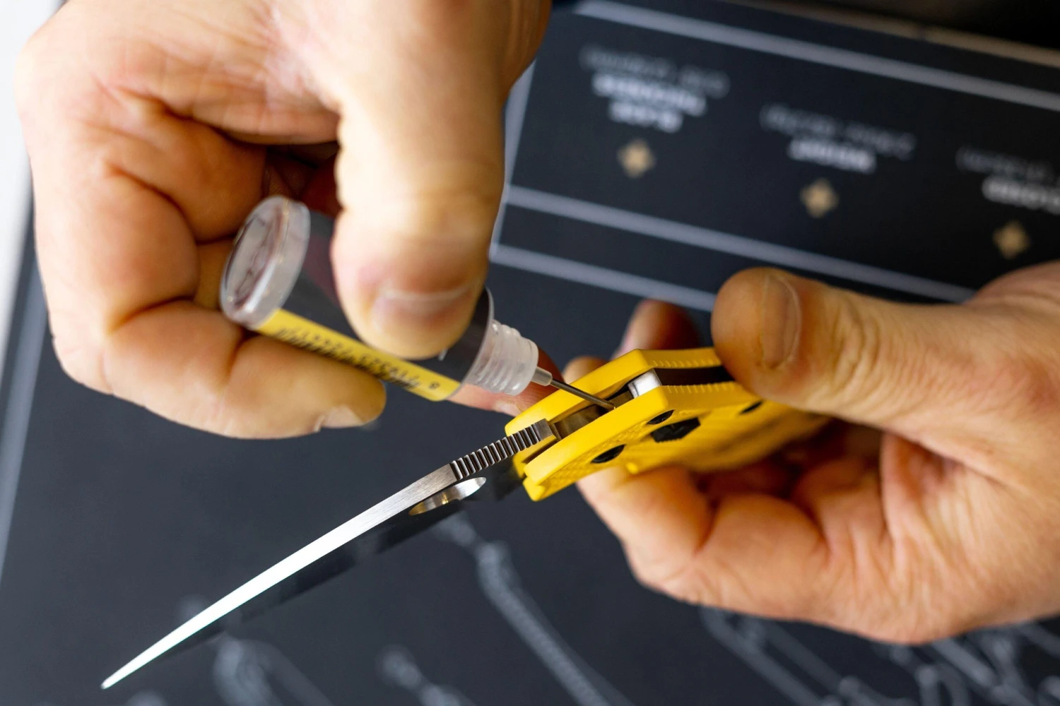 Der Skerper Öl Stift ist ein praktisches Schmiermittel für die Pflege von Taschenmessern, Multitools, Kugellager, Gangschaltungen oder andere Metallteile, die sich bewegen. Wenn Du möglichst lange von der guten Qualität Deines Taschenmessers genießen möchtest, dann ist ein wenig Pflege unverzichtbar. Das Schmieröl des Skerper Öl Stifts lässt sich dank die metallenen Dosierspitze sehr einfach und genau an die beweglichen Teile Deines Taschenmessers anbringen.