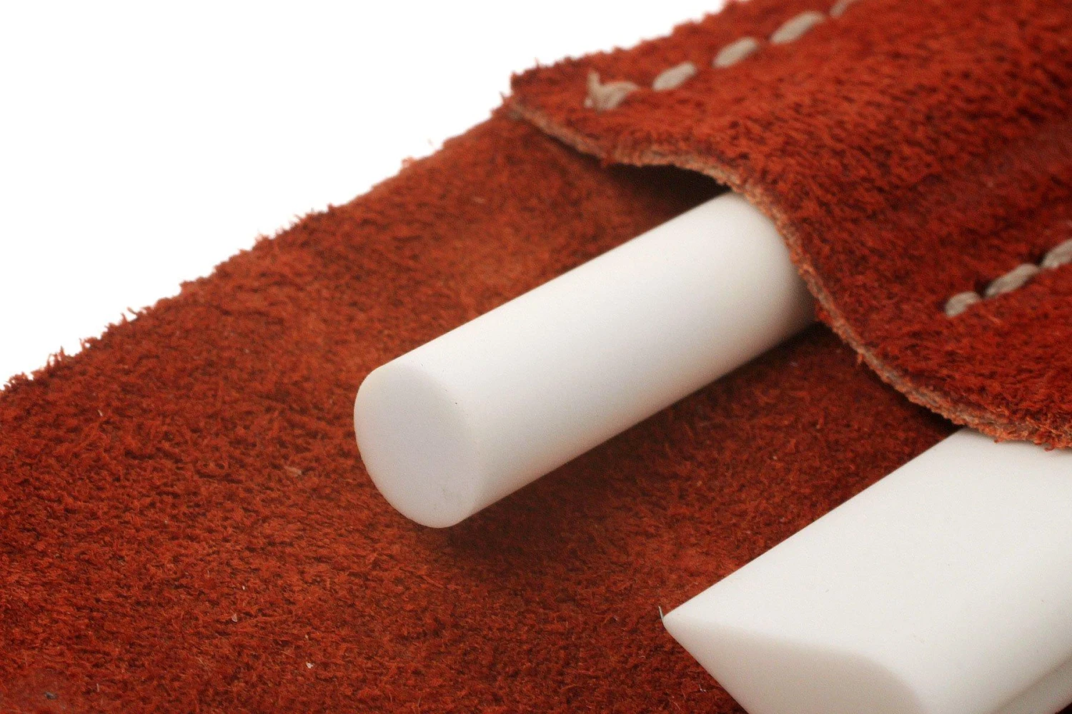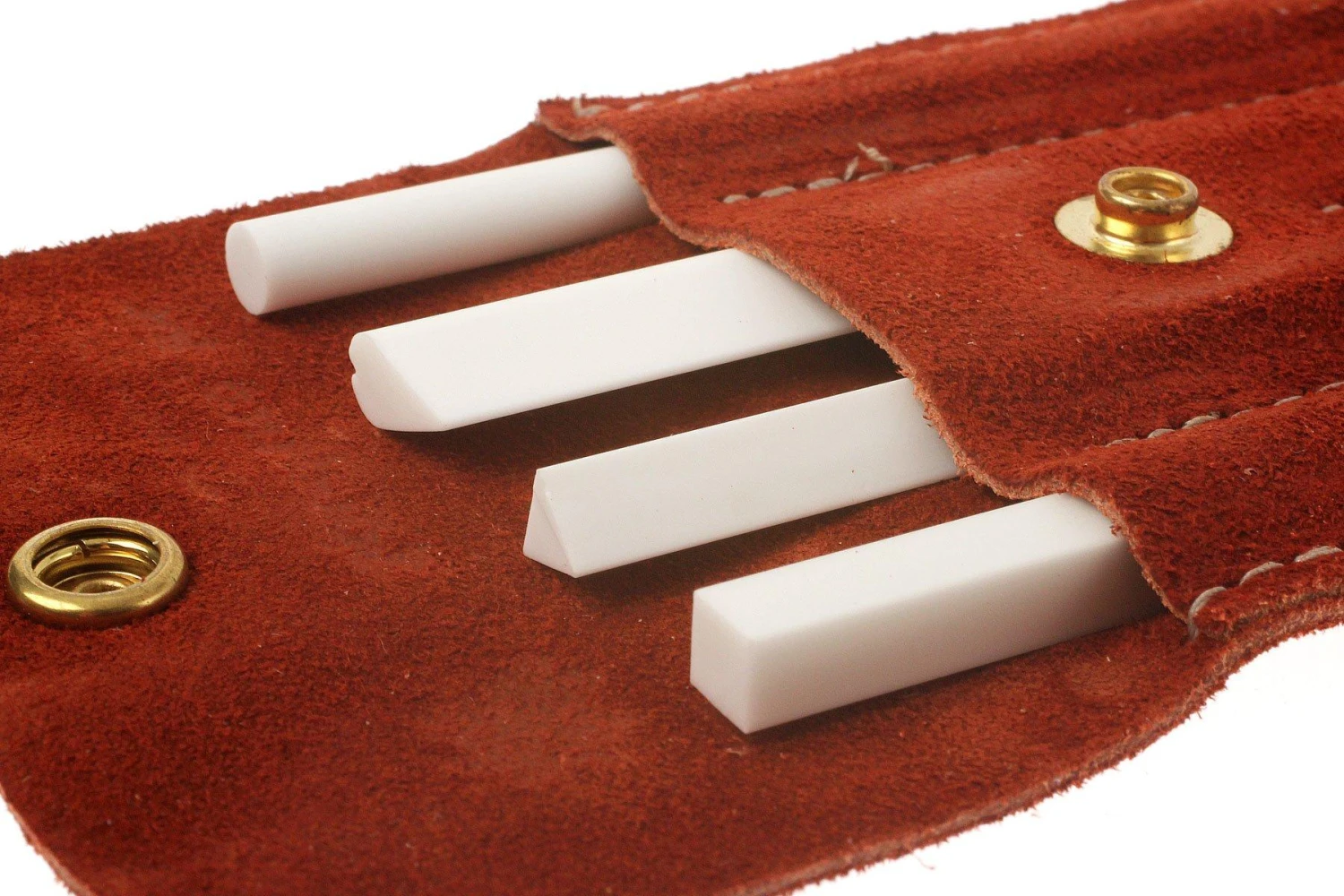 Das Spyderco Set Keramik-Schleifstäbe fein, 400F ist ein Set aus 4 Stück feinen Keramik-Schleifstäben in einem Lederetui.