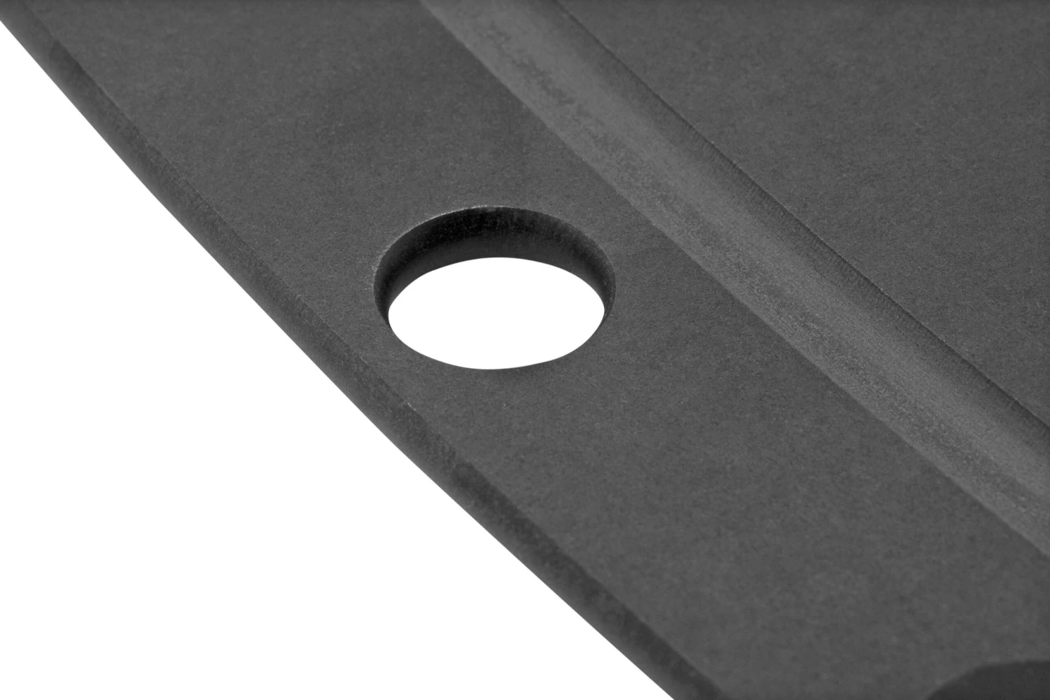 Das Victorinox All-in-One 7.4127.3 ist ein großes Schneidebrett mit 44,5 cm Breite und 33 cm Länge. Das Schneidebrett ist aus schwarzem Richlite gefertigt. Ein Material, das aus einer Kombination von 65 % FSC-zertifiziertem Zellstoff und 35 % Phenolharz besteht. Das Ergebnis ist ein dünnes Schneidebrett mit einer glatten, porenfreien, hitzebeständigen, BPA-freien und vor allem hygienischen Oberfläche. Dieses Holz ist weich genug, um die Schärfe des Messers nicht zu beeinträchtigen und gleichzeitig hart genug, um tiefe Kratzer zu vermeiden.