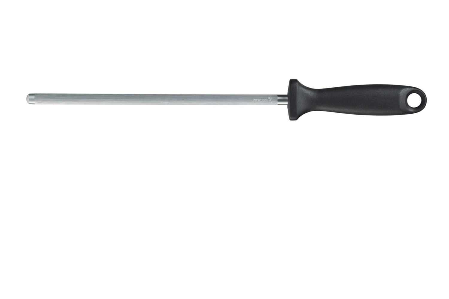 Dieser WMF Grand Gourmet Wetzstahl ist ein ideales Werkzeug, um Deine Küchenmesser vor dem Gebrauch zu schärfen. Führe Dein Messer vor dem Schneiden ein paar Mal über den Wetzstahl. So bleibt die Klinge schön gerade und das Messer wird nicht so schnell stumpf. Hinweis: Mit einem Wetzstahl schleift man nicht, es wird kein Material abgetragen. Verwende einen Wetzstahl nur für die tägliche Pflege Deiner Messer.