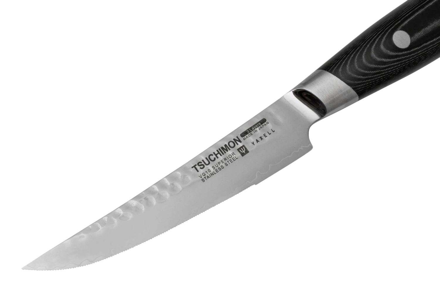 Das Yaxell Tsuchimon 6-teilige Steakmesserset besteht aus sechs stilvollen japanischen Steakmessern mit einer gehämmerten Klinge und einem Messerblock aus Buchenholz. Die Messer haben einen sehr kleinen Wellenschliff, damit sie lange scharf bleiben und Fleischstücke mühelos durchschneiden. Schön zum Verschenken und auch, um es zu bekommen!