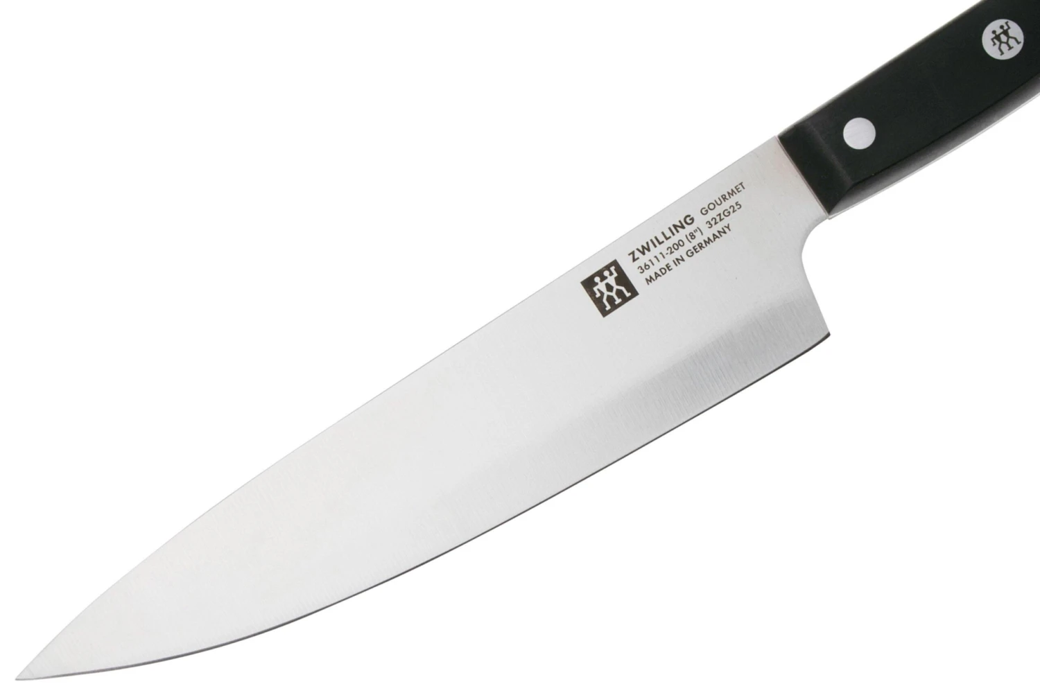 Dieses Zwilling Gourmet 2-teilige Messerset enthält das Kuchenmesser 20 cm und das Officemesser aus der Gourmet-Serie. Das Officemesser ist ideal für kleinere Schneidearbeiten, wie z. B. das feine Zerkleinern von Gemüse oder Obst und das Säubern von Fleisch oder Fisch. Das größere Kochmesser ist das ideale Küchenmesser für die Zubereitung einer Vielzahl von Gerichten. Dieses Multitalent schneidet mühelos Fleisch, Fisch, Gemüse, Obst oder Kräuter. Die Messer sind Teil der Gourmet-Serie von Zwilling. Eine umfassende Serie von Küchenmessern im klassischem Drei-Nieten-Design.